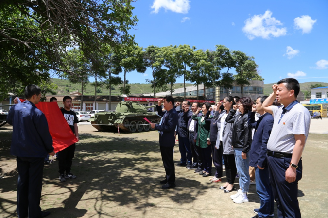 “我志愿加入中國共產黨……”6月28日上午11時,宣誓儀式在榜羅會議紀念館前進行,鮮紅的黨旗擎起一顆顆赤誠的心,醒目的誓詞凝聚起不忘初心的信念與力量。機關全體黨員干部佩戴著熠熠生輝的黨徽,在文史館黨組書記寇明春同志的帶領下,高舉右拳,面對黨旗莊嚴宣誓,表達全體干部對黨的無比崇敬和無限忠誠。