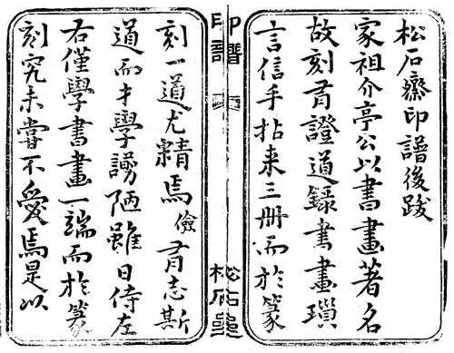 《松石齋印譜》是清道光二十年(1840),唐璉仲孫唐儉(以廉)搜集編輯而成的。在唐儉的《<松石齋印譜>后跋》中云:“家祖介亭公以書畫著名,故刻有《證道錄》《書畫瑣言》、《信手拈來》三冊,而于篆刻一道尤精焉。儉有志斯道,而才學(xué)谫陋,雖日侍左右,僅學(xué)書畫一端而于篆刻究未嘗不愛焉。是以家祖夢游后,嘗檢手澤,有留藏《松石齋印譜》二卷,共計數(shù)百余方,俱系家祖親手所刻。噫,家祖之用心良苦矣哉。雖然家祖之生平所篆刻此外尚夥,或寄之遠(yuǎn)方,或隱于僻地。道光已亥,儉復(fù)搜輯各處,又得數(shù)百余方。編輯此卷,公諸同好,但年遠(yuǎn)日久,其中不無損壞,篆刻刀法多有模糊之處,玩好者當(dāng)有定見,非儉之所得損益焉。是為跋。一是跋寫于唐璉逝世四年后的道光二十年夏四月,現(xiàn)我們從跋文中可得知: