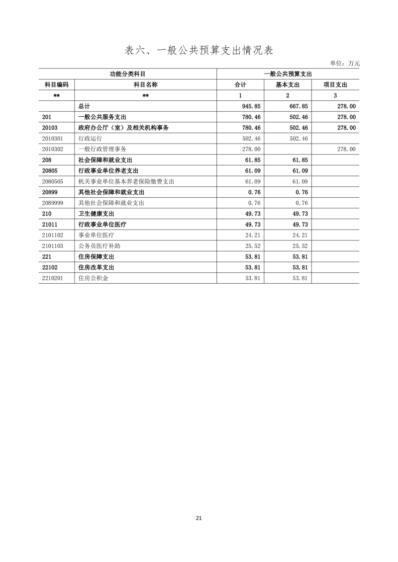 2023年一般公共預算支出945.85萬元(詳見部門預算公開表4,5,6,7),具體安排情況如下: