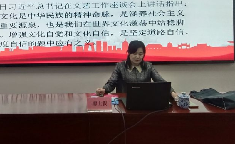 廖士俊同志以學(xué)習(xí)感悟習(xí)近平總書記關(guān)于文化建設(shè)、文化自信的重要講話精神為切入點(diǎn),聚焦黨的二十大“堅(jiān)持把馬克思主義基本原理同中國實(shí)際相結(jié)合、同中華優(yōu)秀傳統(tǒng)文化相結(jié)合”精神,講述中華優(yōu)秀傳統(tǒng)文化在增強(qiáng)文化自信方面的重要意義;她結(jié)合自己曾經(jīng)在敦煌工作學(xué)習(xí)的經(jīng)歷,通過介紹璀璨奪目、價(jià)值珍貴的敦煌文物和壁畫,多視角講述了我省擁有的優(yōu)秀傳統(tǒng)文化資源;她講道,深入研究和闡釋中華優(yōu)秀傳統(tǒng)文化的豐富內(nèi)涵,是文史館的使命和責(zé)任,要依托我省厚重的歷史文化資源,充分挖掘其價(jià)值體系,弘揚(yáng)傳統(tǒng)文化精神,“講好甘肅故事”,提升甘肅文化的競(jìng)爭(zhēng)力和影響力,為鑄就社會(huì)主義文化新輝煌貢獻(xiàn)力量。