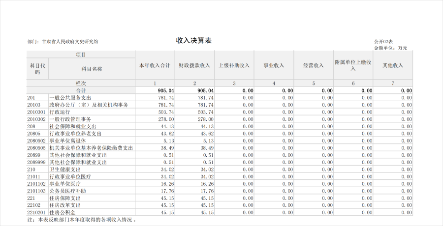 2022年度收入合計905.04萬元,其中:財政撥款收入905.04萬元,占100.00%。