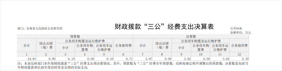 十一、“三公”經(jīng)費:指用一般公共預算財政撥款安排的因公出國(境)費、公務用車購置及運行維護費、公務接待費。其中,因公出國(境)費反映單位公務出國(境)的國際旅費、國外城市間交通費、住宿費、伙食費、培訓費、公雜費等支出;公務用車購置費反映單位公務用車購置支出(含車輛購置稅);公務用車運行維護費反映單位按規(guī)定保留的公務用車燃料費、維修費、過路過橋費、保險費、安全獎勵費用等支出;公務接待費反映單位按規(guī)定開支的各類公務接待(含外賓接待)支出。
