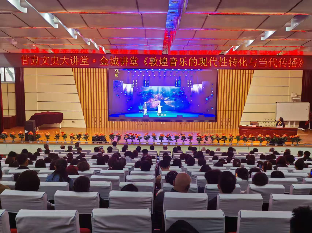 9月20日上午,由甘肅省人民政府文史研究館與中共蘭州市委宣傳部聯(lián)合主辦的“甘肅文史大講堂·金城講堂”敦煌音樂專題講座,在蘭州市第二十七中學禮堂精彩開講。