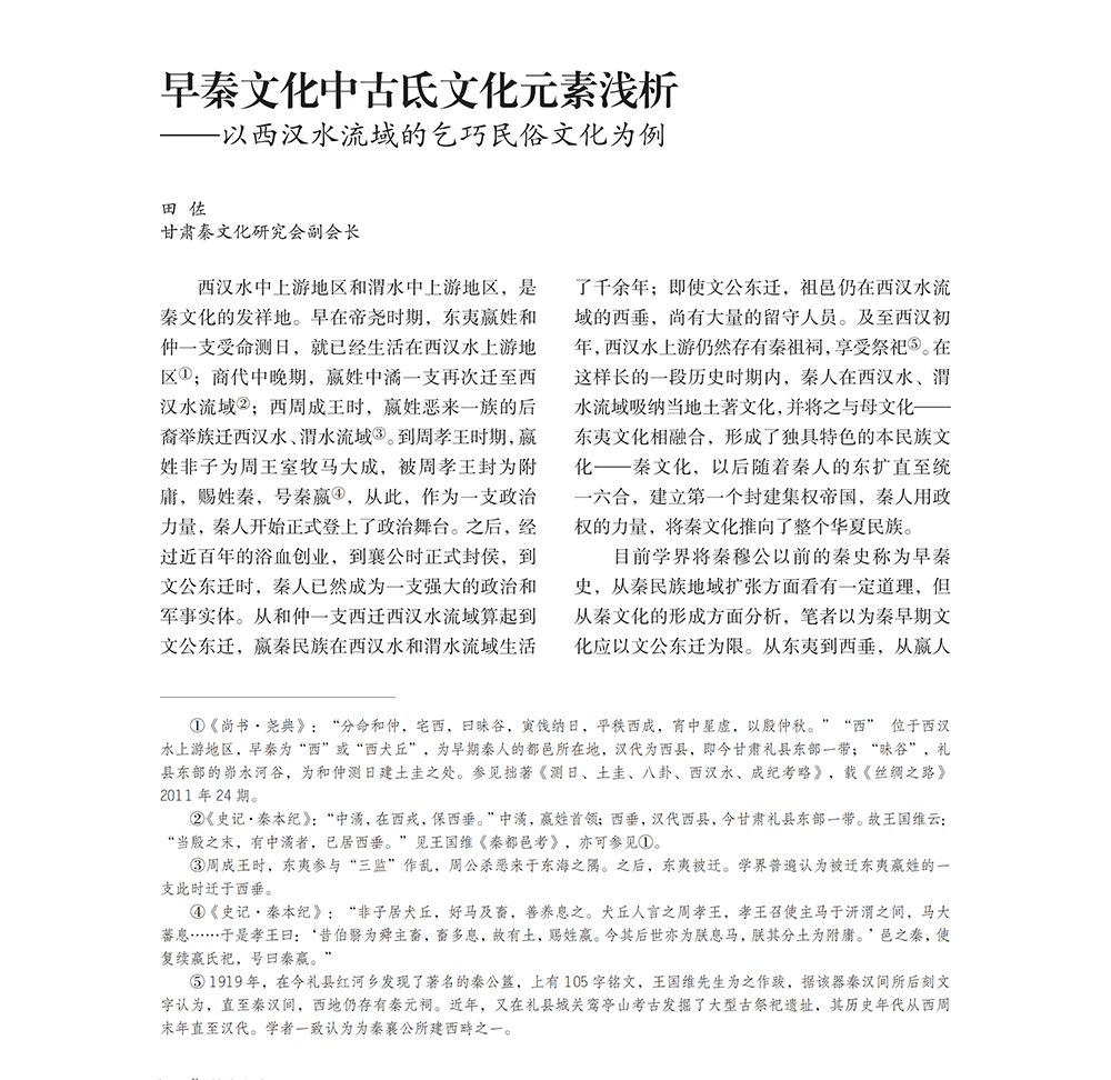 早秦文化中古氐文化元素淺析——以西漢水流域的乞巧民俗文化為例
