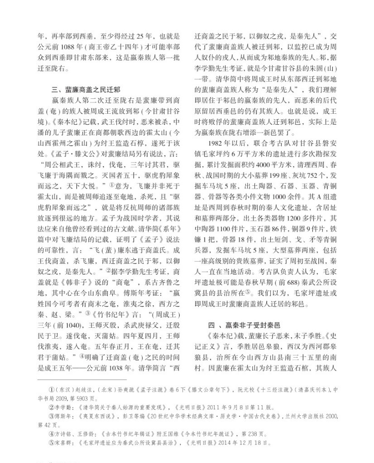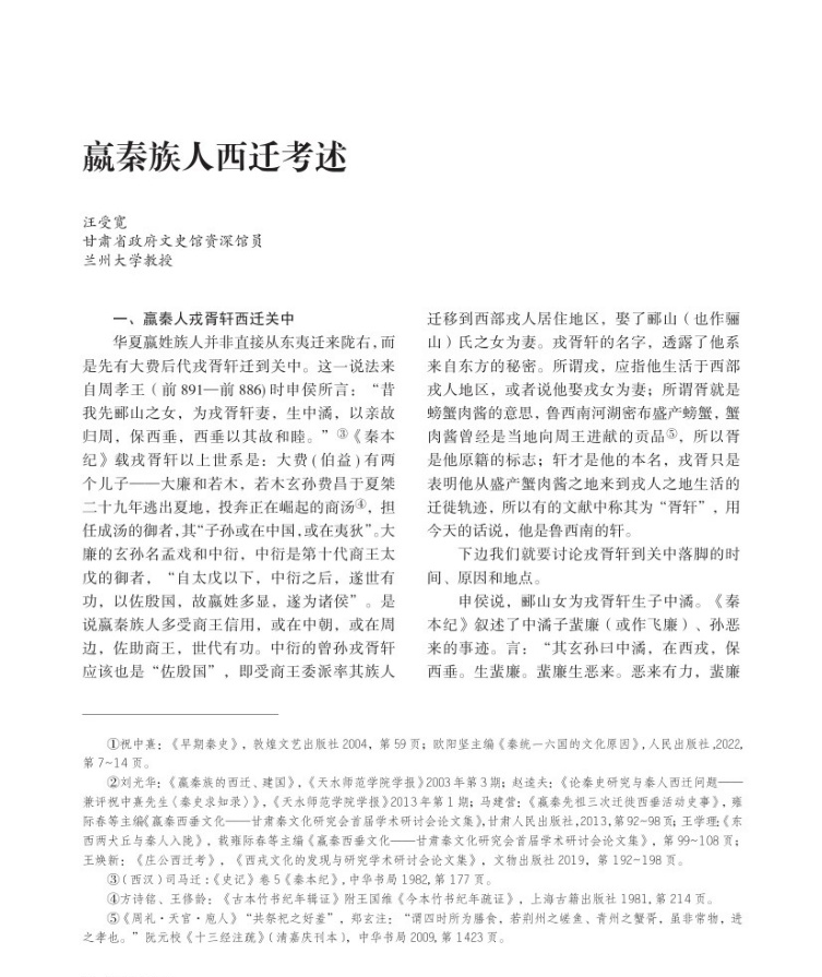 贏秦族人西遷考述